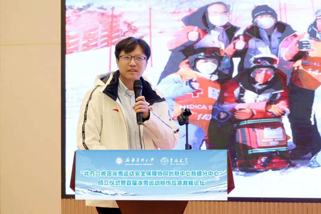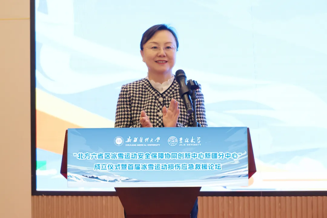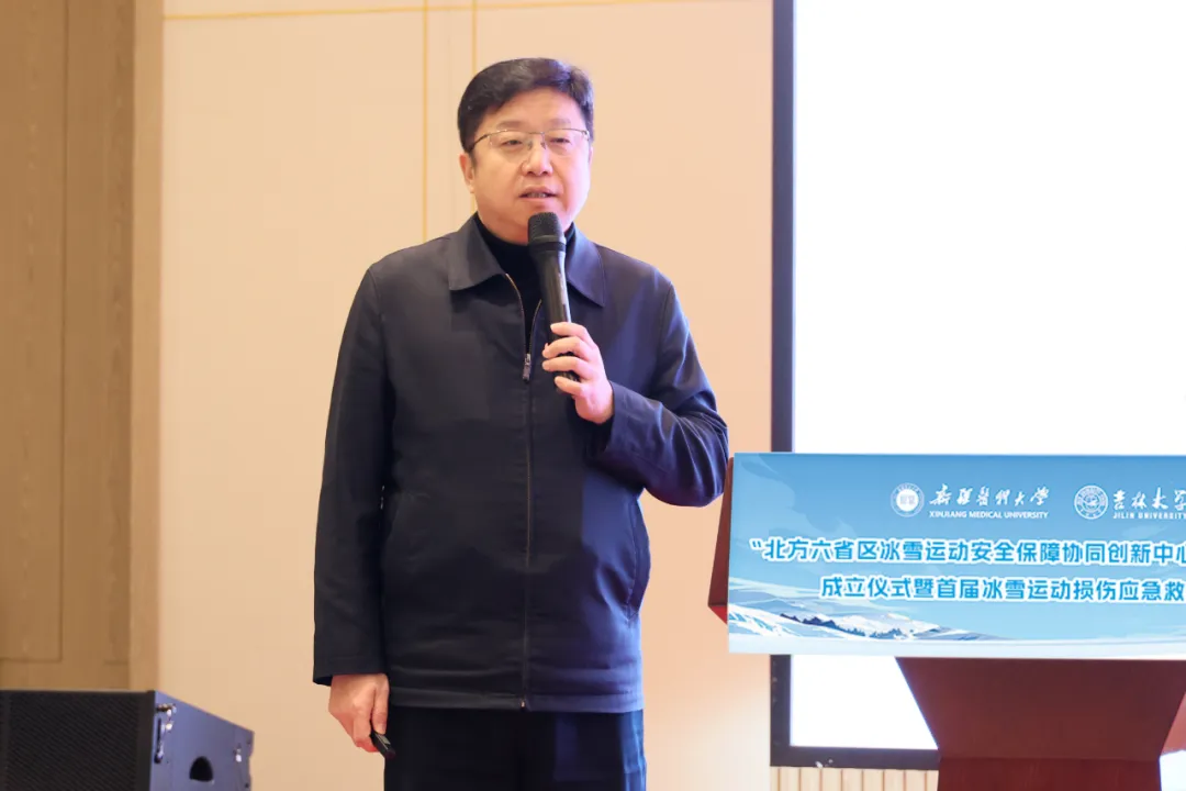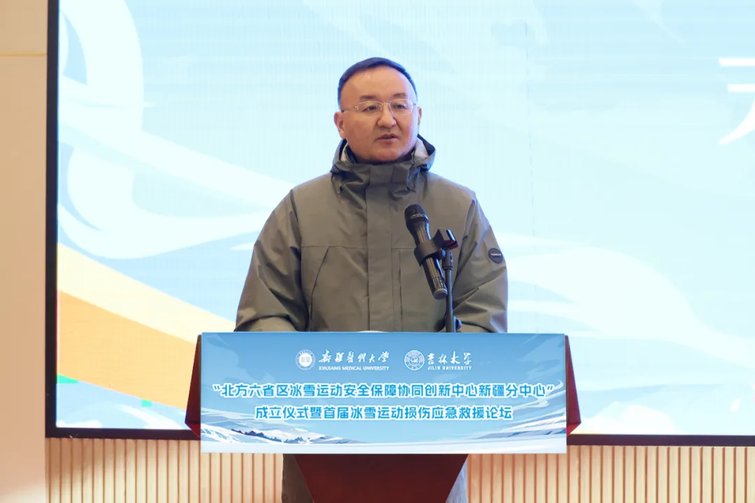 新疆医科大学党委常委、副校长木胡牙提·乌拉斯汉在致辞中指出,“北方六省区冰雪运动安全保障协同创新中心”新疆分中心成立,是贯彻党中央部署、服务自治区“旅游兴疆”“体育强区”战略的关键举措,也是推动卫生健康与冰雪经济融合的创新实践。学校将以此为契机,整合资源,联合吉林大学等支援力量,打造冰雪运动全周期保障体系,把分中心建成立足新疆、服务西北、联动全国的冰雪安全示范标杆,为建设健康中国、健康新疆及冰雪运动安全发展贡献力量。