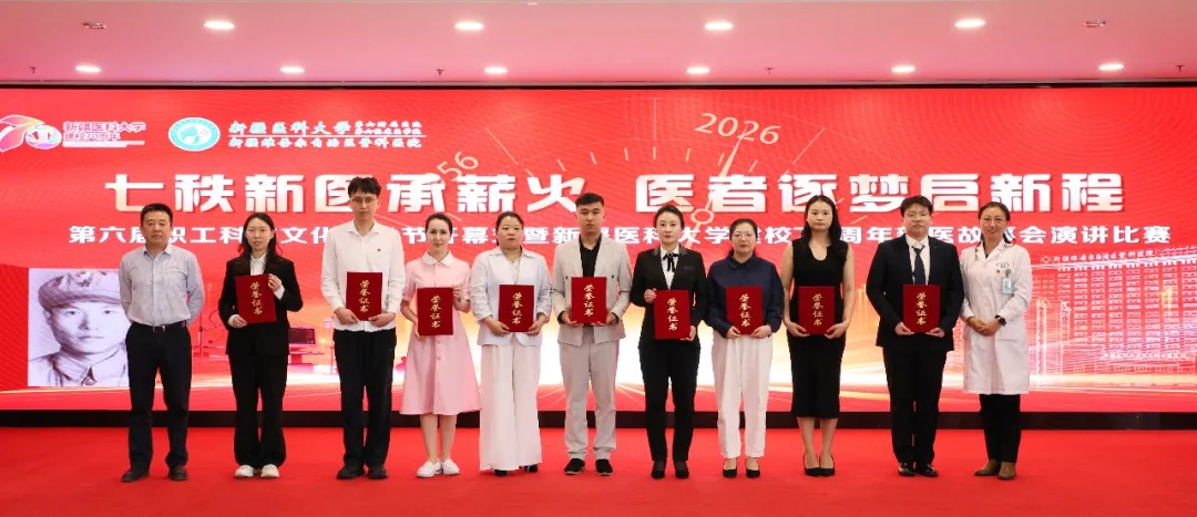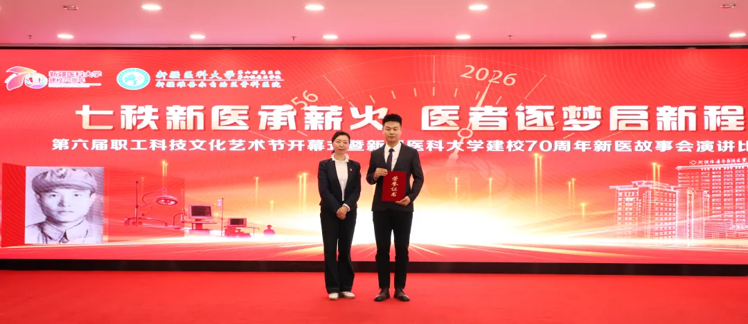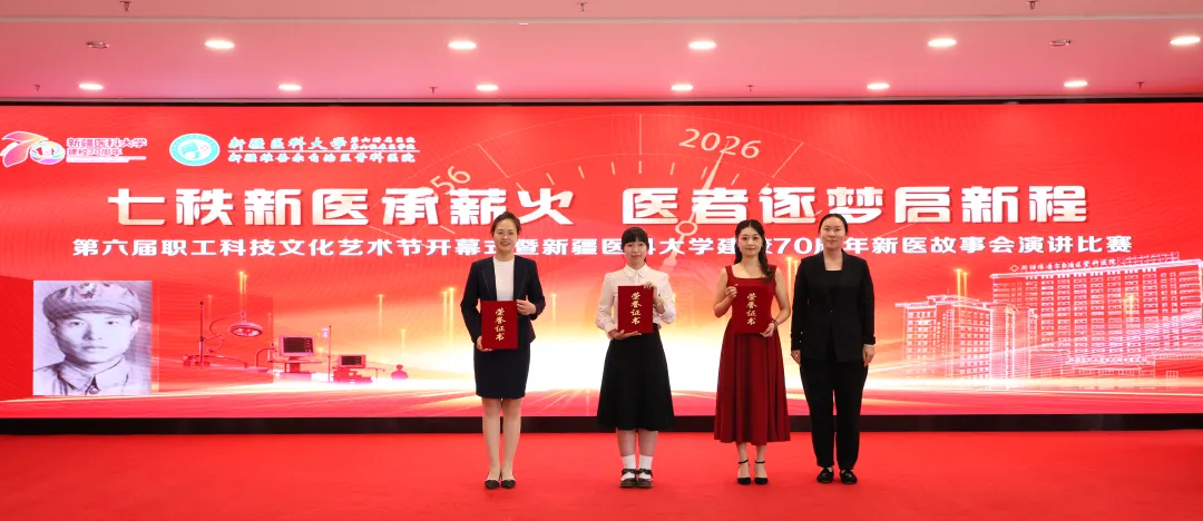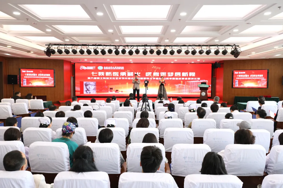 为庆祝新疆医科大学建校70周年,丰富全院职工精神文化生活,不断发挥文化凝聚人心、浸润心田作用,4月15日,新疆医科大学第六附属医院(第六临床医学院)第六届职工科技文化艺术节开幕式暨“新疆医科大学建校70周年”新医故事会演讲比赛圆满举行。院领导、评委老师、职工代表、学生代表齐聚一堂,共赴一场思想与文化、情怀与使命的盛会。