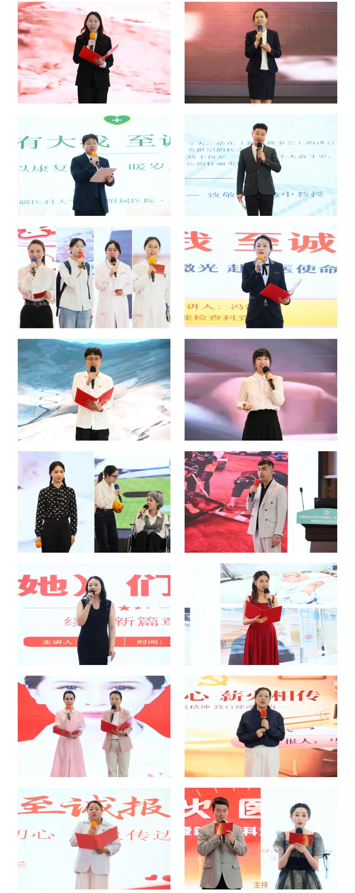 作为本届科技文化艺术节的开篇重头戏,“新医故事会”演讲比赛以“七秩新医承薪火 医者逐梦启新程”为主题,围绕强国复兴、铸牢中华民族共同体意识、个人成长成才三大模块展开。来自医院各科室及学生党支部的15组选手依次登台,立足不同视角,既讲述新医人扎根边疆、医者仁心、奉献担当的医者故事,也分享各行业榜样坚守初心、拼搏奋进的感人事迹,从治沙英雄的执着坚守到基层工作者的默默付出,从时代先锋的勇毅求索到青年一代的热血担当,以真挚情感、铿锵语言,诠释忠诚担当、坚韧不拔、甘于奉献、至诚报国的精神品格,传递向上向善、服务人民的价值追求,赢得现场阵阵掌声。
